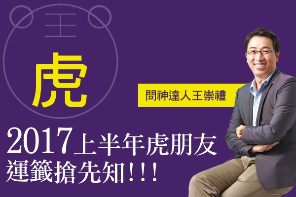 2017上半年屬虎朋友的運勢重點,主要請先放在走出過去的陰影,問神達人王崇禮老師特別指出:你在2016年可能發生過一些不愉快,內心深受傷害,至今無法走出陰影。因此,要注意別讓這個心結成為阻礙你向前邁進的主因,否則就算2017年有好運勢,助力也不大,那就太可惜了!