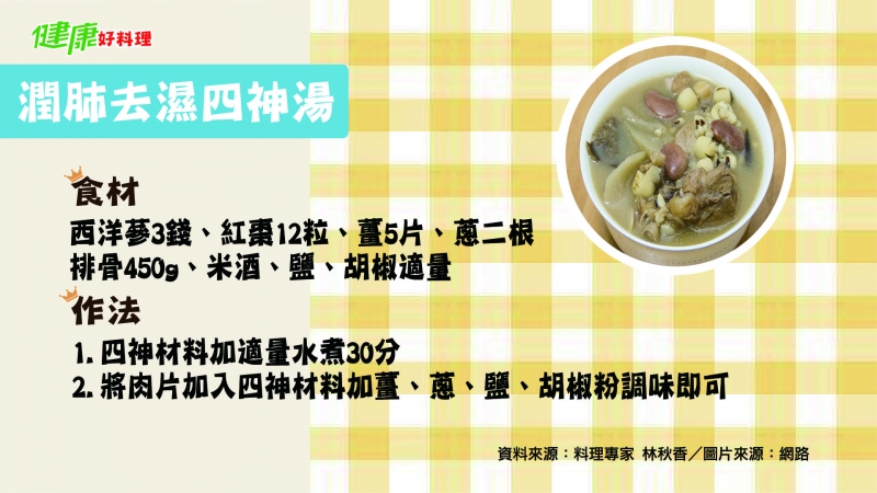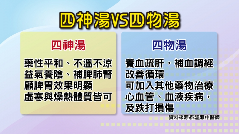 四神湯顧脾胃的效果明顯,組成均為性屬平和、不溫不涼的藥材,就連虛寒與燥熱體質的人都可以吃,具有益氣養陰、補脾肺腎功效,尤其對於「心氣血虛」或是「肺氣虛」的過敏幼童而言,更有具有健脾、利濕、補腎的功效。