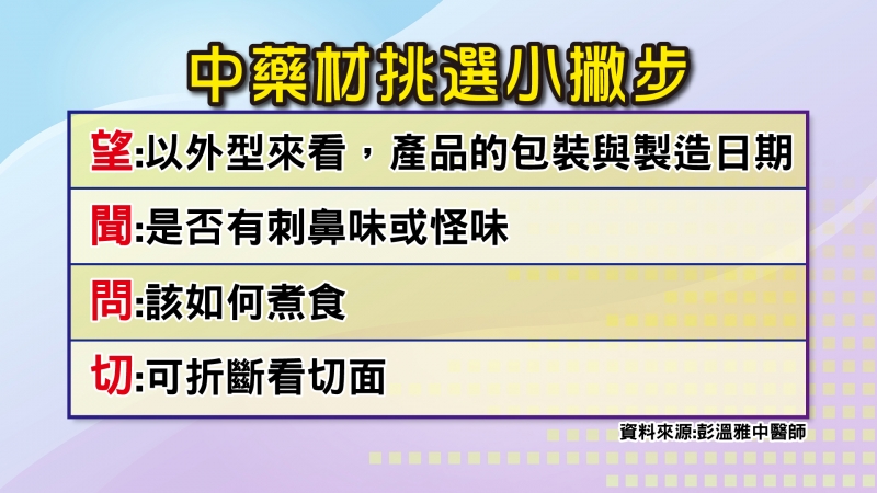 台北醫學大學附設醫院傳統醫學科主治醫師張家蓓曾舉例,四物中的芍藥可分為「白芍藥」與「赤芍藥」,如果容易緊張、胸悶、乳房脹、經期不規律,可選用白芍藥;若月經來疼痛嚴重、血塊多、血色暗的,則屬血瘀體質應選用赤芍藥。而「地黃」也因炮製過程不同而有不同名稱及療效,如果平時較怕冷,容易腰酸、手腳冰冷,可以選用「熟地黃」;如果生理期容易冒痘痘、伴有失眠及口乾舌燥現象的,就要改用「生地黃」,或是加入一些清肝火的藥材,例如黃芩,避免病人愈吃愈上火。