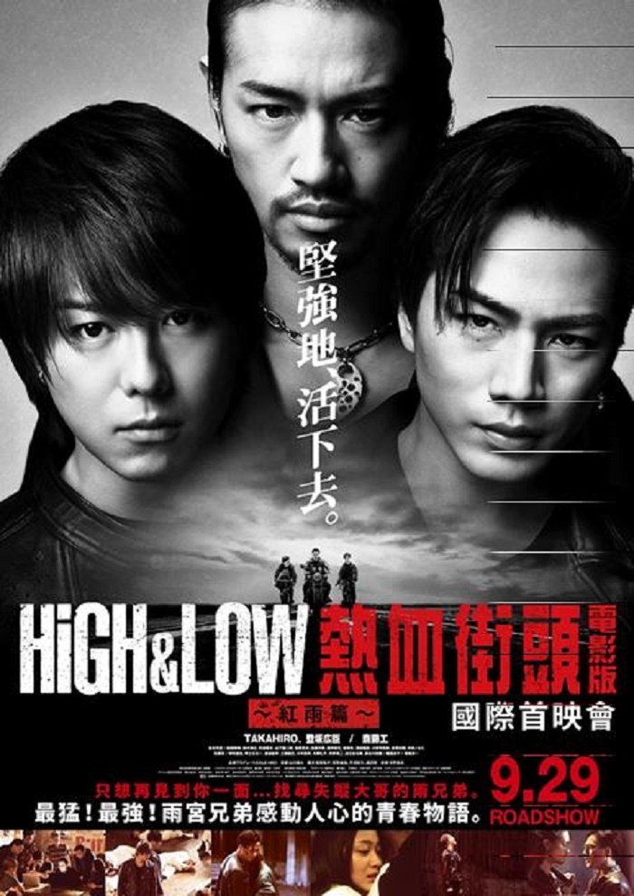 日本天團「放浪兄弟」重磅企劃的《HiGH & LOW熱血街頭》,為宣示進軍海外並與台灣粉絲交心,劇中兩位主角TAKAHIRO與登坂廣臣親臨台灣,參加9月29日晚間在西門町樂聲影城舉辦盛大的國際首映會與粉絲見面,High 翻全場!首映會一口氣播出《HiGH & LOW熱血街頭 電影版》和最新的《HiGH & LOW熱血街頭 電影版~紅雨篇~》,TAKAHIRO與登坂廣臣也於映後舉辦粉絲見面會,讓粉絲直呼好幸福!。