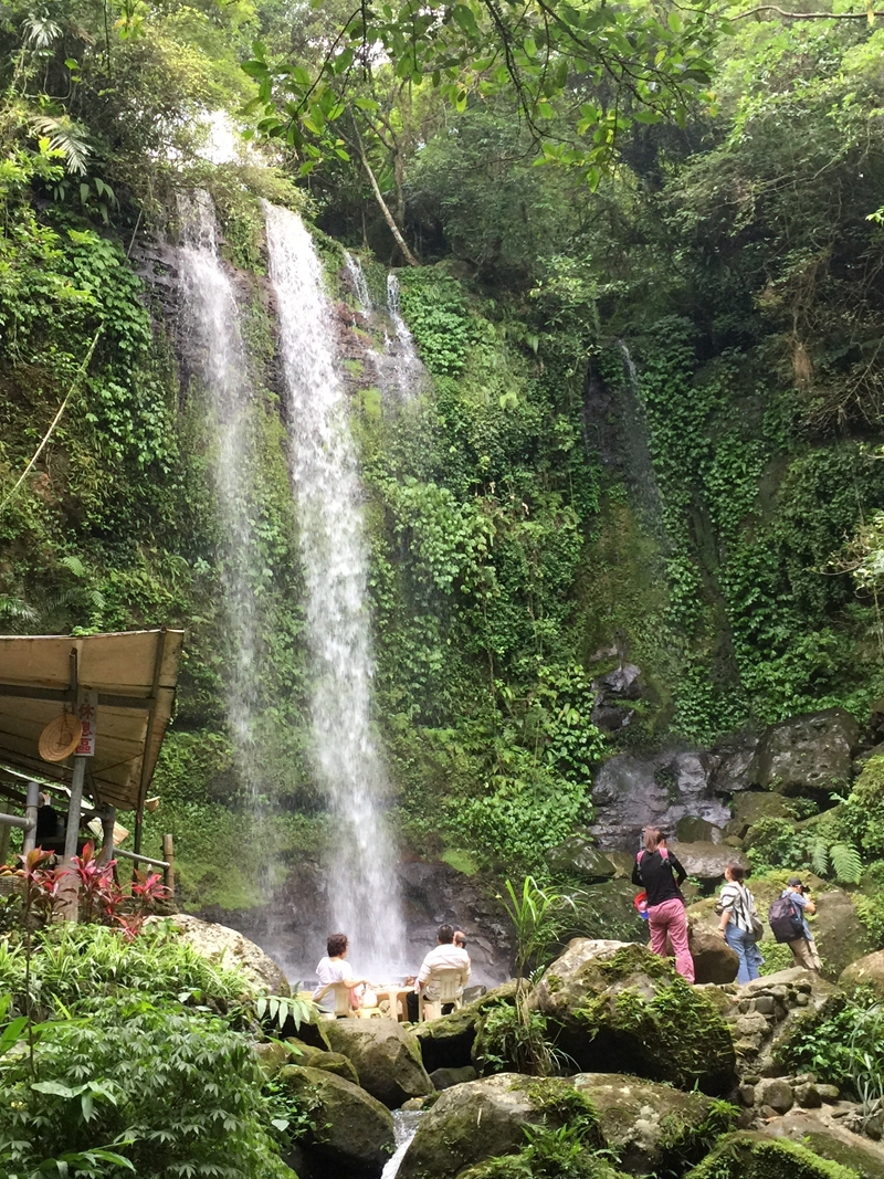 劉克襄帶著我們沿著步道走到林家草厝,走上林家草厝前,會看到一畝優美的梯田,讓人不敢相信這是在市區近郊。步道原路折返,下山可順訪炮子崙瀑布,又稱「阿柔瀑布」,瀑高約有十幾公尺,瀑水垂直峭壁飛瀉而下,非常清涼。