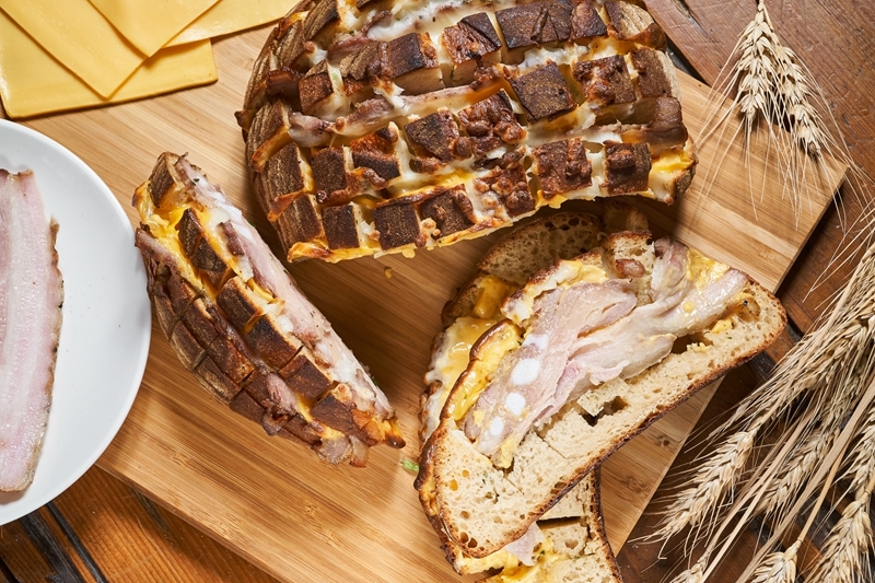 自製麵包加上窯燻豬肉、起士,風味獨特。