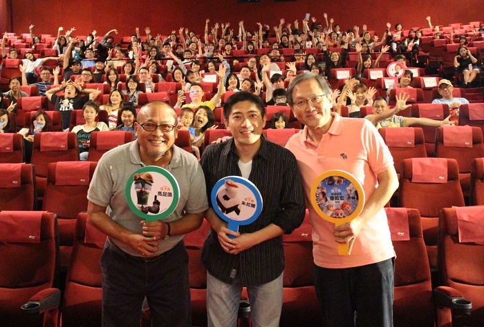 聲優照片圖說左起:邱展文(馬屁鴿)、于正昇(朱尼爾)與導演康殿宏