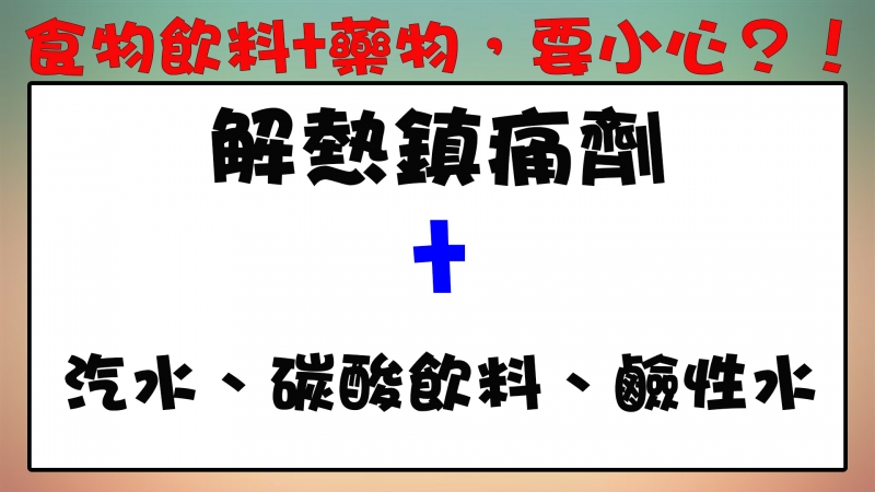 解熱鎮痛劑與汽水、碳酸飲料、鹼性水搭配,會減慢胃的排空速度,故吃藥不要特別配。
