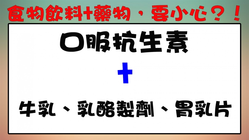 口服抗生素應避免和牛乳、乳酪製劑、胃乳片一同服用,因它們會使四環素類抗生素之血中濃度降低而使藥效降低。