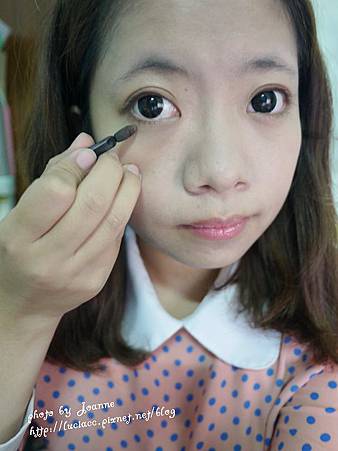 使用無珠光咖啡色眼影,在眼睛下方稍微刷一點點陰影