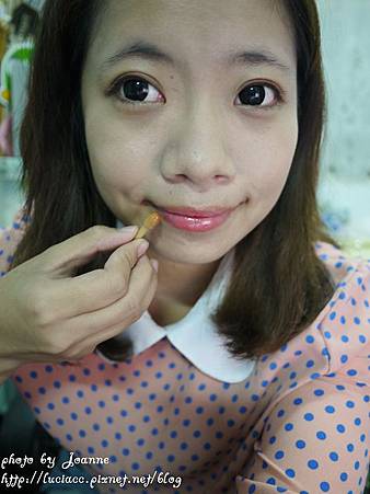 書上是教,不但用唇露塗在唇部中間,再上一層亮橘色的唇膏