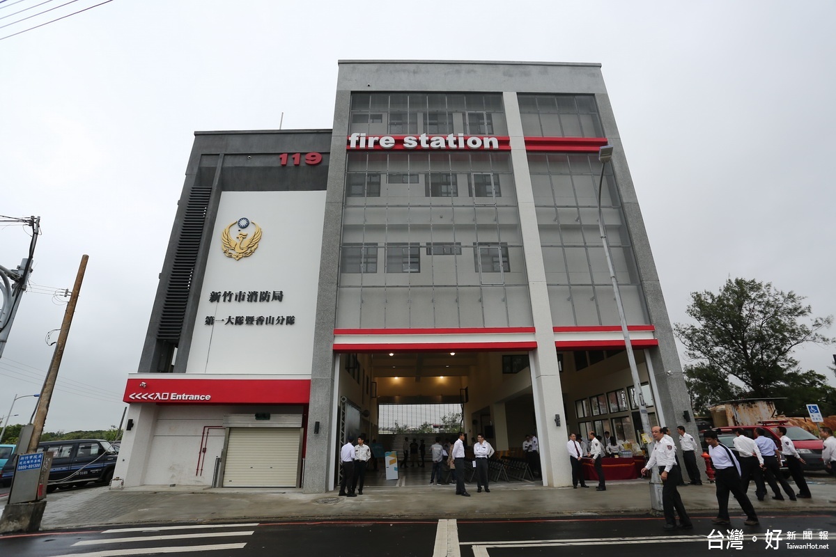 為提升救災戰力,消防局第一大隊暨香山分隊消防廳舍去年一月開工、投入九千多萬,目前整體新建工程已完工,預計11月上旬啟用。