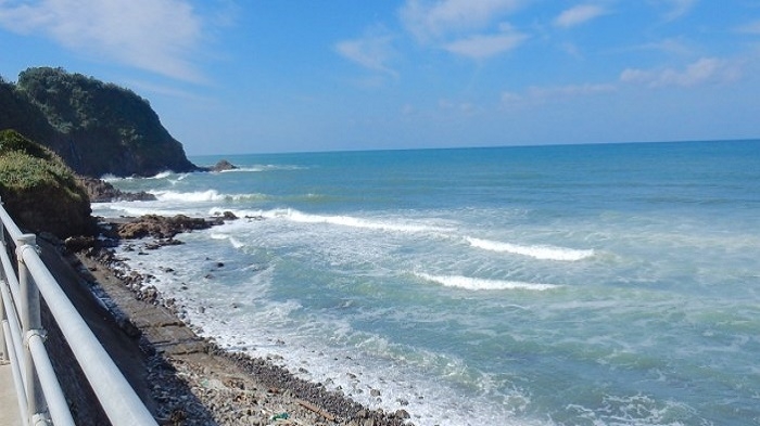 列車行進途中會經過青海川站,能想像離海浪這麼近嗎?