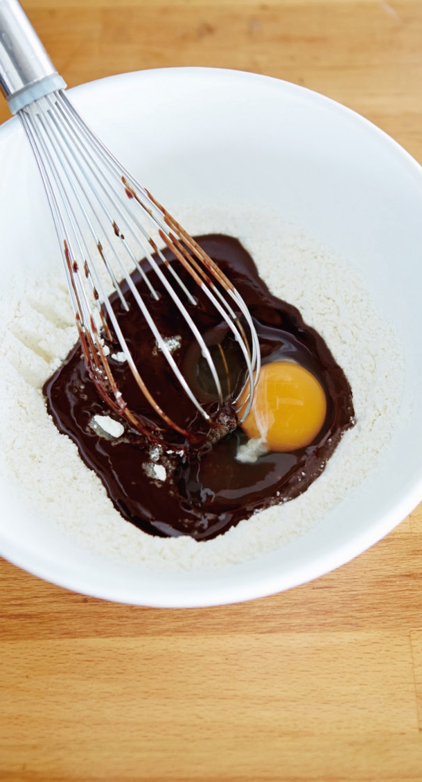 6. 將 5 與雞蛋加入 4 中,充分攪拌均勻。