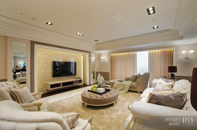 Debby以其深厚的美學底蘊精準掌控空間色調、氛圍及家飾的搭配,法式語彙巧妙串連起場域,配合精挑細選的家飾軟裝使空間氛圍和諧一致,同時以藕色及米白為主要色調,調製一室高雅深韻的空間表情。客廳中央茶几選用柔軟的質材配合色調一致的軟裝,當光影穿透至室內空間灑落於室,即為空間帶出溫馨氛圍。屋主陳太太Annie更提到,在配飾階段多虧有舒杰室內裝修設計團隊陪同挑選家具及燈飾,細心把關才能將屋主的喜好與室內風格完滿融合,實現他們夢想中的家。