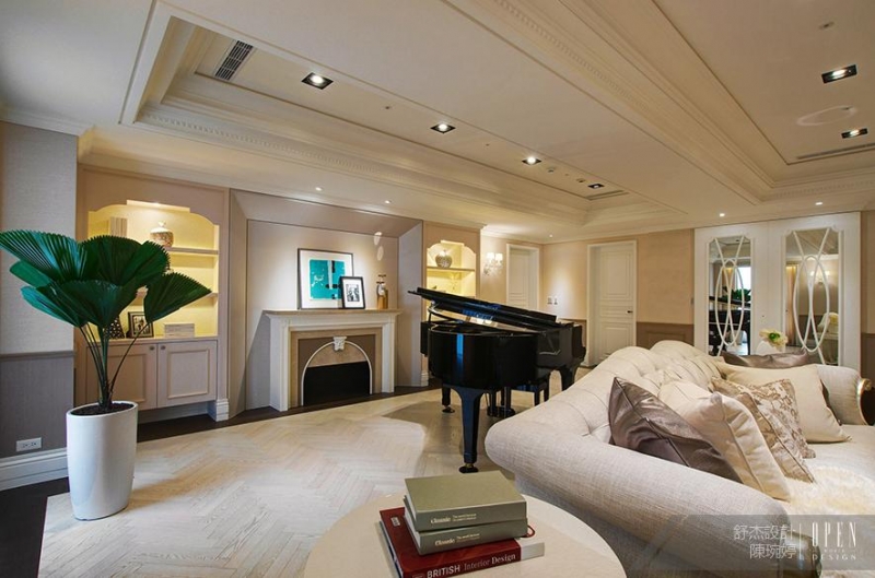 有鑑於此,舒杰室內裝修設計有限公司 Debby 陳琬婷 便以法式的感性語彙於百坪豪宅內塑造淡然閒適的優雅生活氣息。玄關處以素雅的灰白色調鋪陳空間,輔以藕色及黑白色系點綴,替空間渲染一層典雅大器的質感。走廊櫃體採用鏡面質材,使屋主便於打理衣著外更藉由鏡面反射使視覺通透寬敞。在Debby精心設計之下,此案更一舉獲得2015