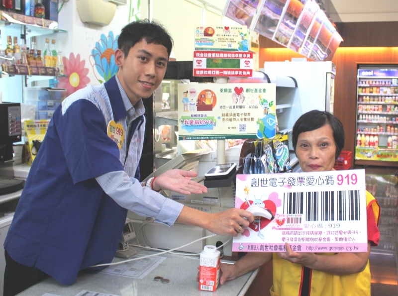 使用愛心條碼供店員掃描,也可捐出當次發票幫助創世