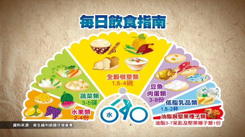 飲食應依照「每日飲食指南」之建議份量,均衡攝取六大類食物,尤其要吃足夠的蔬菜、水果、全榖、豆類、堅果種子及低脂乳製品。