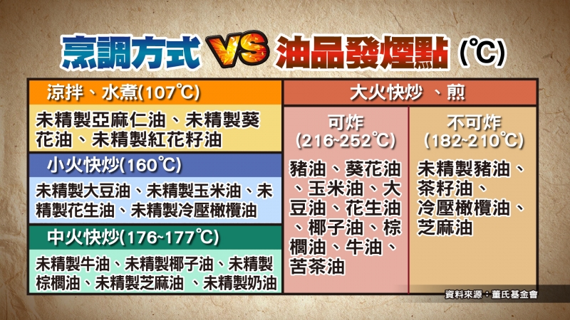 家庭用的話就可以用好的油,也就是「冷壓種子油」花生油、苦茶油,或是「特級初榨果實油」橄欖油