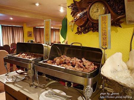 沙拉吧除了有沙拉,還有海鮮冷盤、海鮮壽司和脆皮德國豬腳等熱食