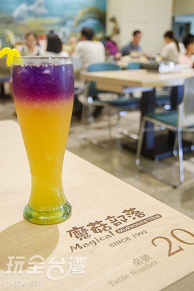 圖說:蘑菇披薩配上超夯的蝶豆花飲品/玩全台灣旅遊網特約記者陳健安攝