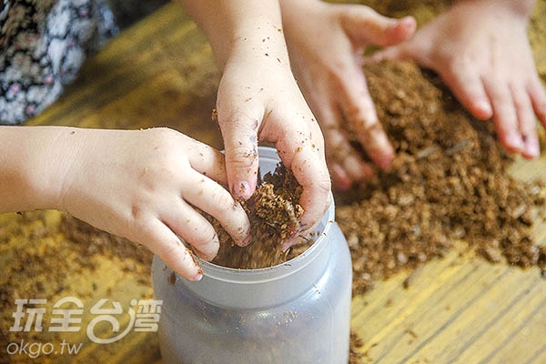 種菇DIY體驗非常的簡單,就連小朋友也可以操作,只要將培養土壤弄碎,挑出較大的顆粒後,裝進菌瓶內擠壓紮實,蓋上瓶蓋就完成囉!光是弄碎土壤就足以讓小朋友玩的不亦樂乎,更可以從實際操作中學習,這便是魔菇部落開創以來所堅持的理念。