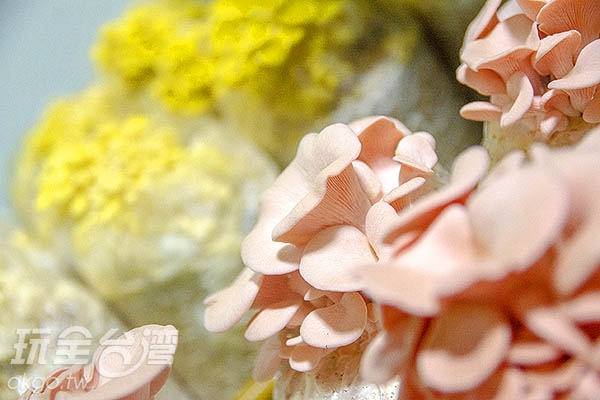 魔菇部落培育的杏鮑菇,尺寸更是一般在外頭看到的好幾倍大,更有杏鮑菇與香菇培育出來的「杏香菇」,其他像是女生最愛的粉紅玫瑰菇、黃金菇、日本蠔菇等,每個都長的頭好壯壯!園區內的DIY種菇體驗則以粉紅玫瑰菇與黃金菇為主,一般可生長3~5次,更有遊客回家後細心栽種,生長高達12次呢!