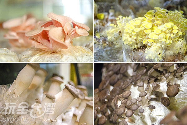 圖說:粉紅玫瑰菇、黃金菇、杏鮑菇、日本蠔菇/玩全台灣旅遊網特約記者陳健安攝