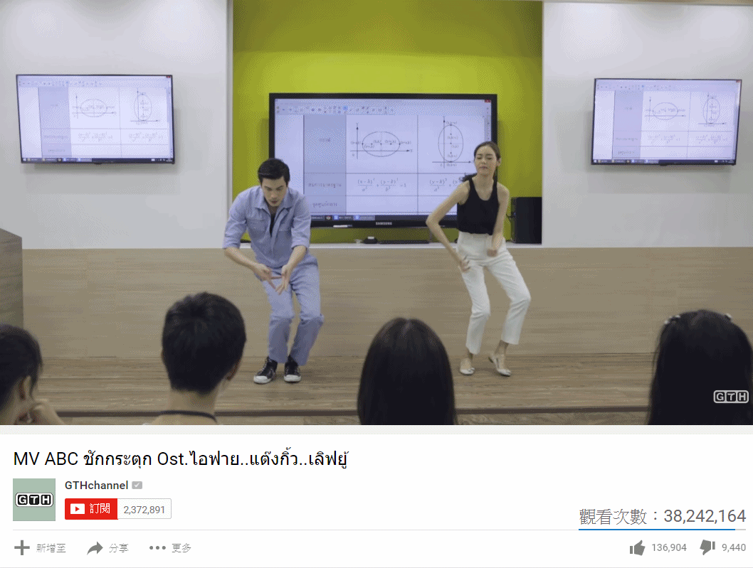 讓背後零翻開腦內資料庫(逼逼逼逼~~搜尋中),對啦!就2年前開始流行的那一首泰國歌啊!它是源自電影《我很好~謝謝 愛你呦》的主題曲,歌名是《ABC抽搐》~當時還拍了以下這支MV,到現在可是累積3千萬的點閱率啊!