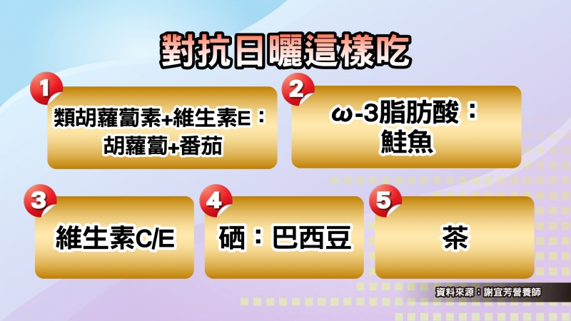 - 類胡蘿蔔素+維生素E:胡蘿蔔+番茄