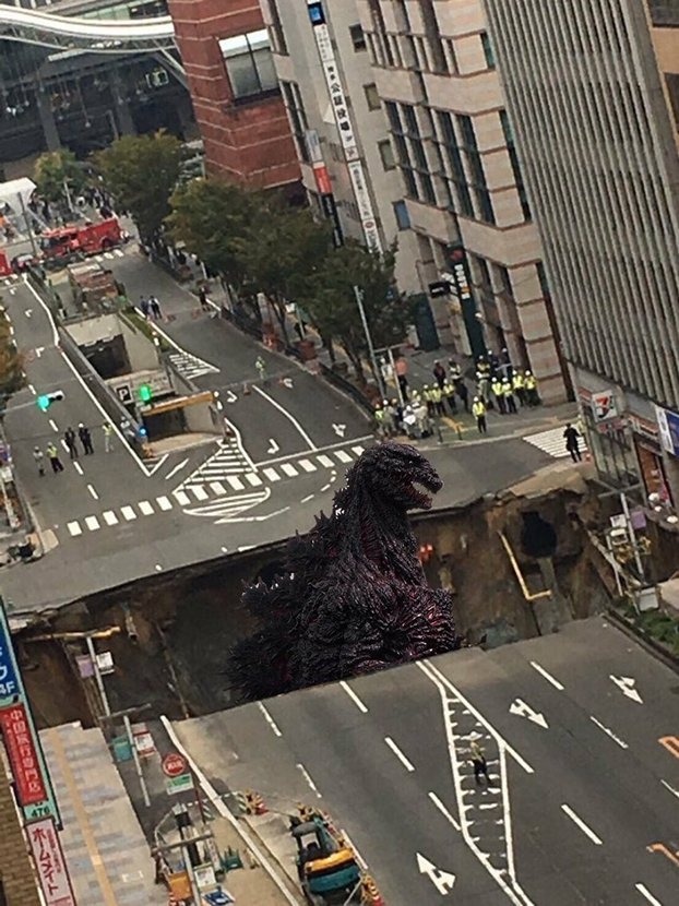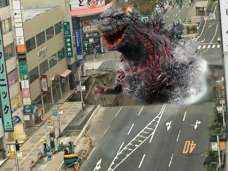 然而,對這件事情日本網友不但沒有害怕,反而開始惡搞,PS修圖什麼怪獸都衝出來啦XDD