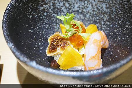 在介紹製道菜時師父和我們聊到,在日本四季分明,所以日本料理的師傅更利用四季不同的食材入菜和擺盤