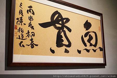 充滿藝術的不規則金屬燈具,盆栽和書法字畫 , 讓這包廂流瀉出文藝氣息