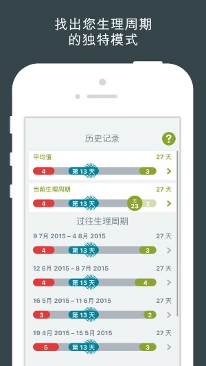 可以看到數據智能分析出的經期時間和受孕高風險區等