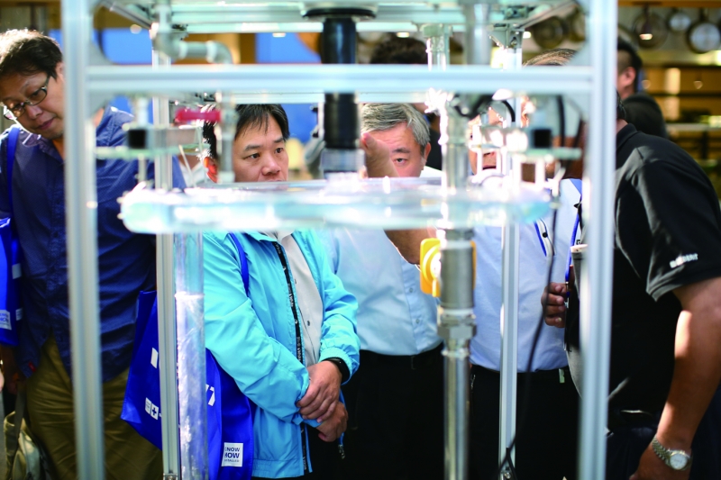 在歐洲市佔第一的Geberit集團擁有傑出的科技研發技術,致力於提供完整且有系統的給、排水解決方案。這次展示會現場的焦點即是「Pluvia屋頂雨水排水系統」和特別以透明HDPE(高密度聚乙烯)材質製成的「Sovent建築室內排水系統」,現場賓客皆親自見證其內部構造、運作原理及令人驚豔的高效排水能力。