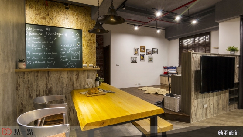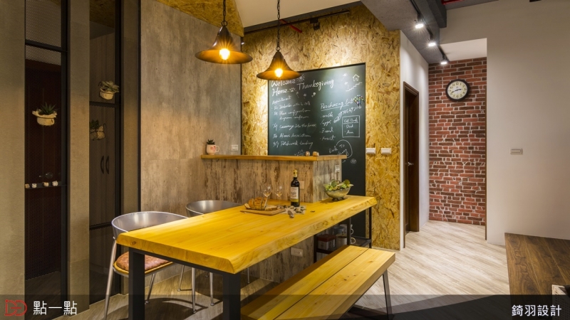 使用建材:海島型耐磨地板、黑板漆、OSB纖維板、文化石、系統櫃