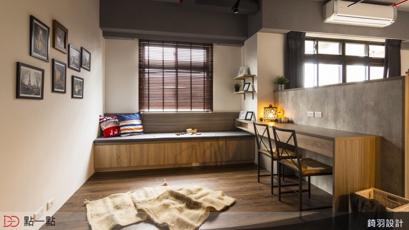 將原本的臥室牆面打掉,放大使用空間,再施做架高木地板,強化出書房兼和室的休閒區域。