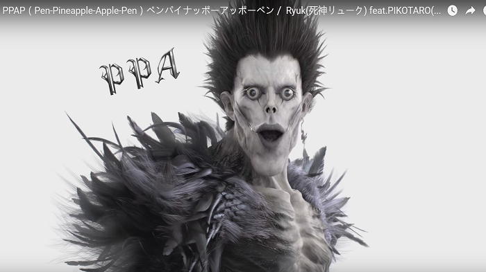 《死亡筆記本:決戰新世界》官方和PPAPピコ太郎(PIKOTARO)大叔合作,推出由死神「路克」來跳「PPAP」的宣傳短片,恐怖的死神跳起PPAP相當有趣,最後還用鳳梨蘋果筆在「死亡筆記本」上寫字,讓人看了毫無違和感。