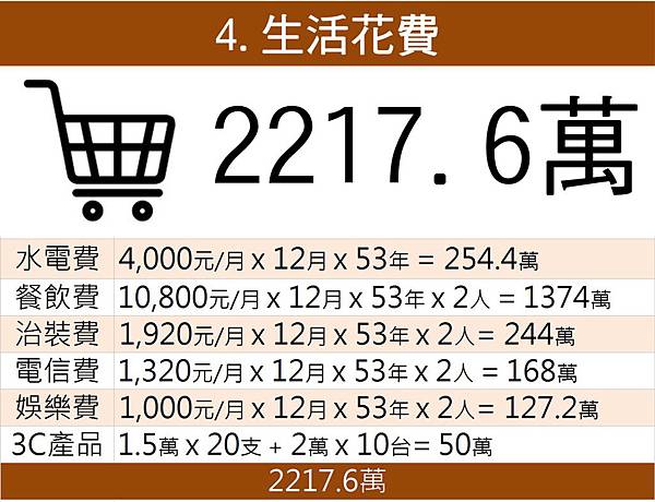 1. 23歲開始養自己,一路計算到75歲。