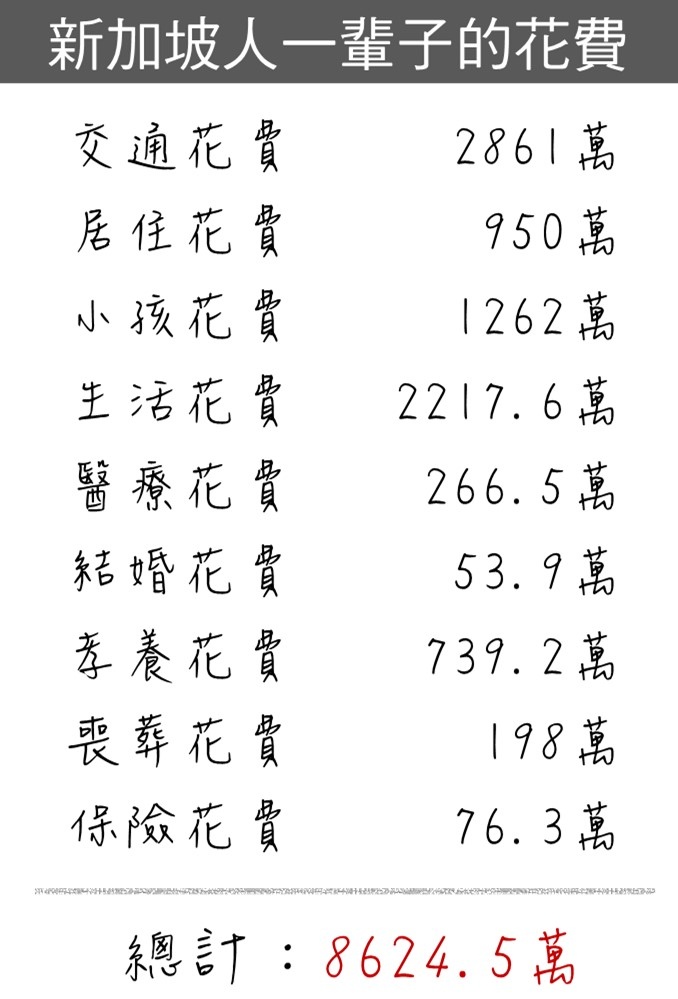 算出"新加坡小家庭一輩子所需花費",