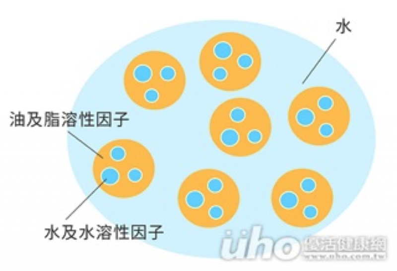 (運用水包油、油包水的原理,讓養分能夠通過皮膚表層,進入皮膚底層。圖片提供/優活健康網)