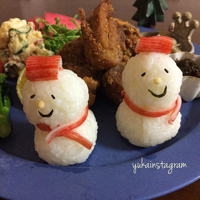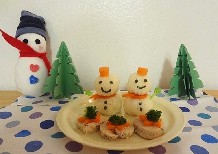 可愛的聖誕節變化菜單③ 把飯糰做成雪人♡