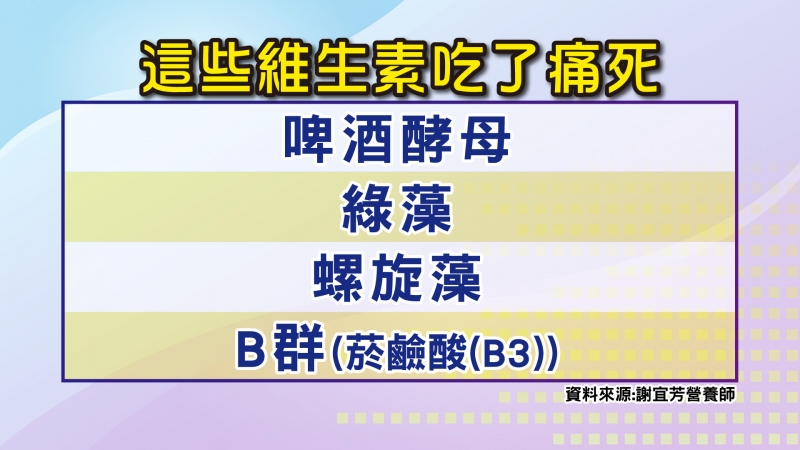 蜂王乳、啤酒酵母、益生菌、藻類健康食品,會讓尿酸上升,B群裡含菸鹼酸,會讓體內產生尿酸。