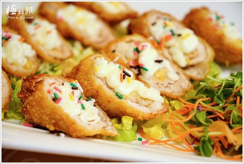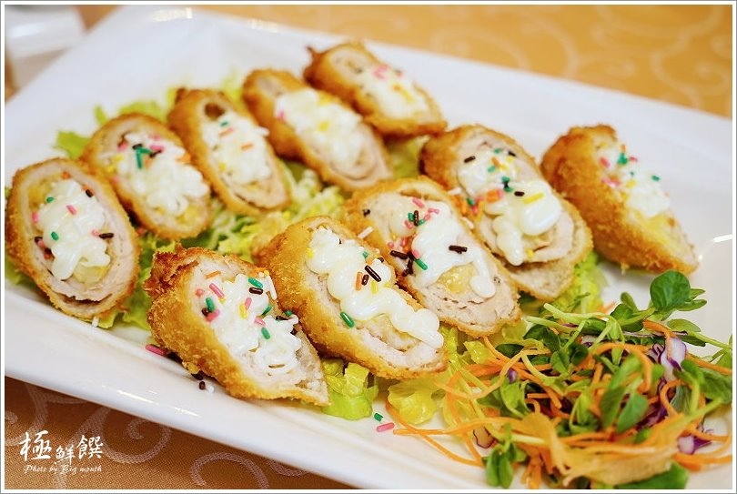 ▼香蕉吉士里肌卷(338元),這道也算是店家的創意料理之一,特別採用里肌肉包搭配起司包裹香蕉再拿去酥炸,看起來金黃酥脆非常美味的樣子!