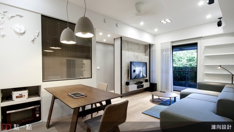 餐廚之間,沒有牆面;客廳與主臥、浴廁之間,也沒有一堵牆的存在。