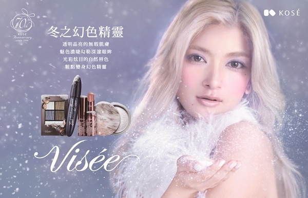 萬眾矚目的知名日系彩妝品牌Visée,於2016冬季推出夢幻魅惑的「冬之幻色精靈」彩妝,12月1號將在屈臣氏獨家販售4款冬季限量新品-深邃晶耀眼影盒、豔黑濃情睫毛膏、無瑕白紗蜜粉、絕色濃唇膏。每款限定色妝品都是限量發售,冰藍、深棕、酒紅等色的搭配,瞬間變身夢幻的冰雪精靈。