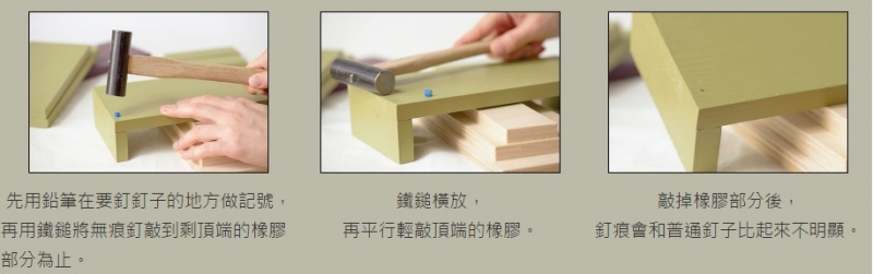 6. 組裝完畢後,在前後兩面的四角各釘1根釘子,就能更加牢固。