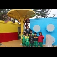 一群小朋友到場體驗新公廁啟用,小朋友被亮麗的色彩和獨特的造型吸引,不少小朋友說,沒想到積木也可變成公廁,建築師好厲害!