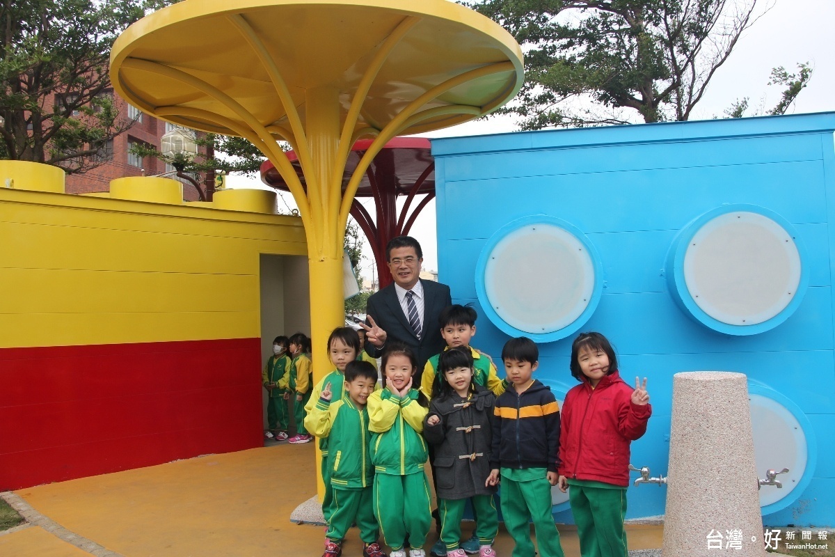 黃振彥表示,兒童公園是鎮內超人氣的休憩空間,每天早晚都有很多父母或阿公阿嬤,帶著小朋友在這裡玩耍,以前想上廁所須走到附近的體育場內,有一段長距離,為了提供便利性,就近在兒童公園內興建這間創意十足的積木親子公廁。