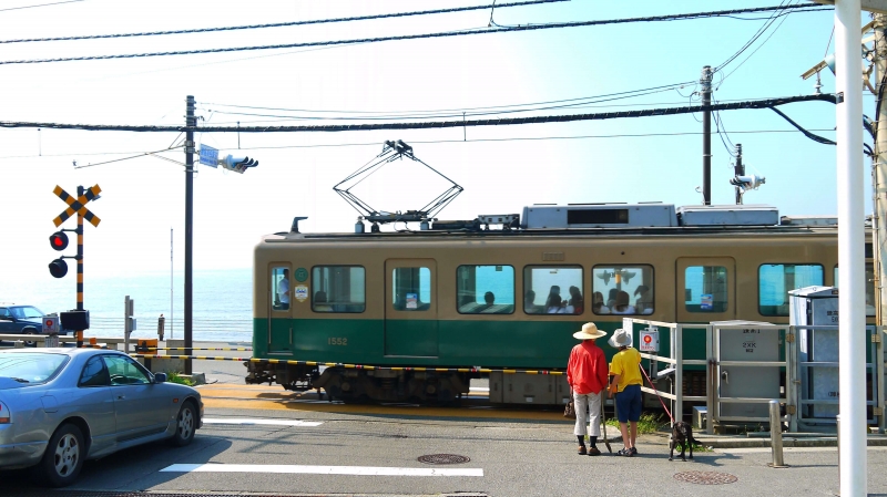 車站旁的平交道,是《灌籃高手》 MV裡晴子與櫻木花道相遇的場景,背景還有火車通過,成為觀光客必須拍照的場景,好像沒有拍到平交道和電車,就沒來過江之島。