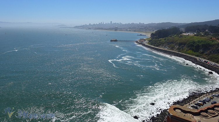 最後一眼看美麗的浪花搭配金門大橋,套用一句從芝加哥遠道而來表妹所說的話,這裡真的是"價值百萬的景觀"(Million Dollar View)。唯一要提醒各位的,是舊金山的灣區風浪真的不小,怕冷的話,來這裡玩還是要多加件衣服比較保險。