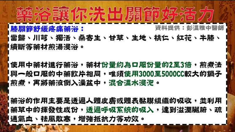 ◆洗出關節力-中醫的藥浴保養+膝蓋按摩伸展