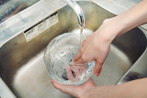 將要用的容器以水清洗乾淨。若容器中帶有細菌,植物就有可能生病,因此要仔細清洗並擦乾。