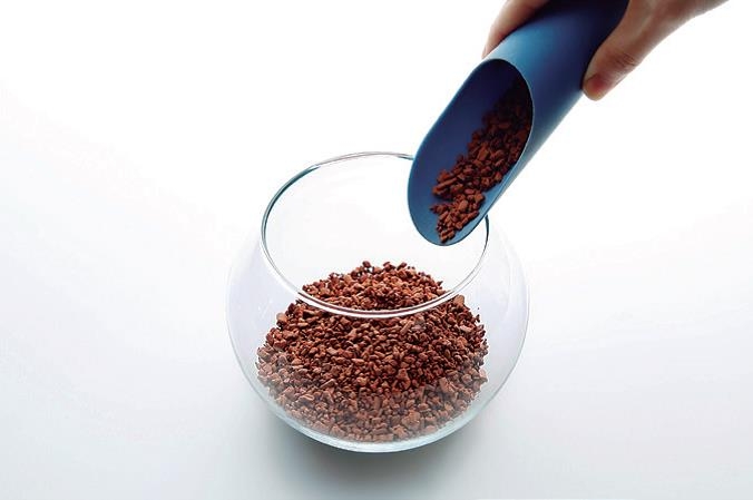 將輕石盛入容器底部。用盛土器或調羹放入會更順手。照片中盛入的高度約為1cm。